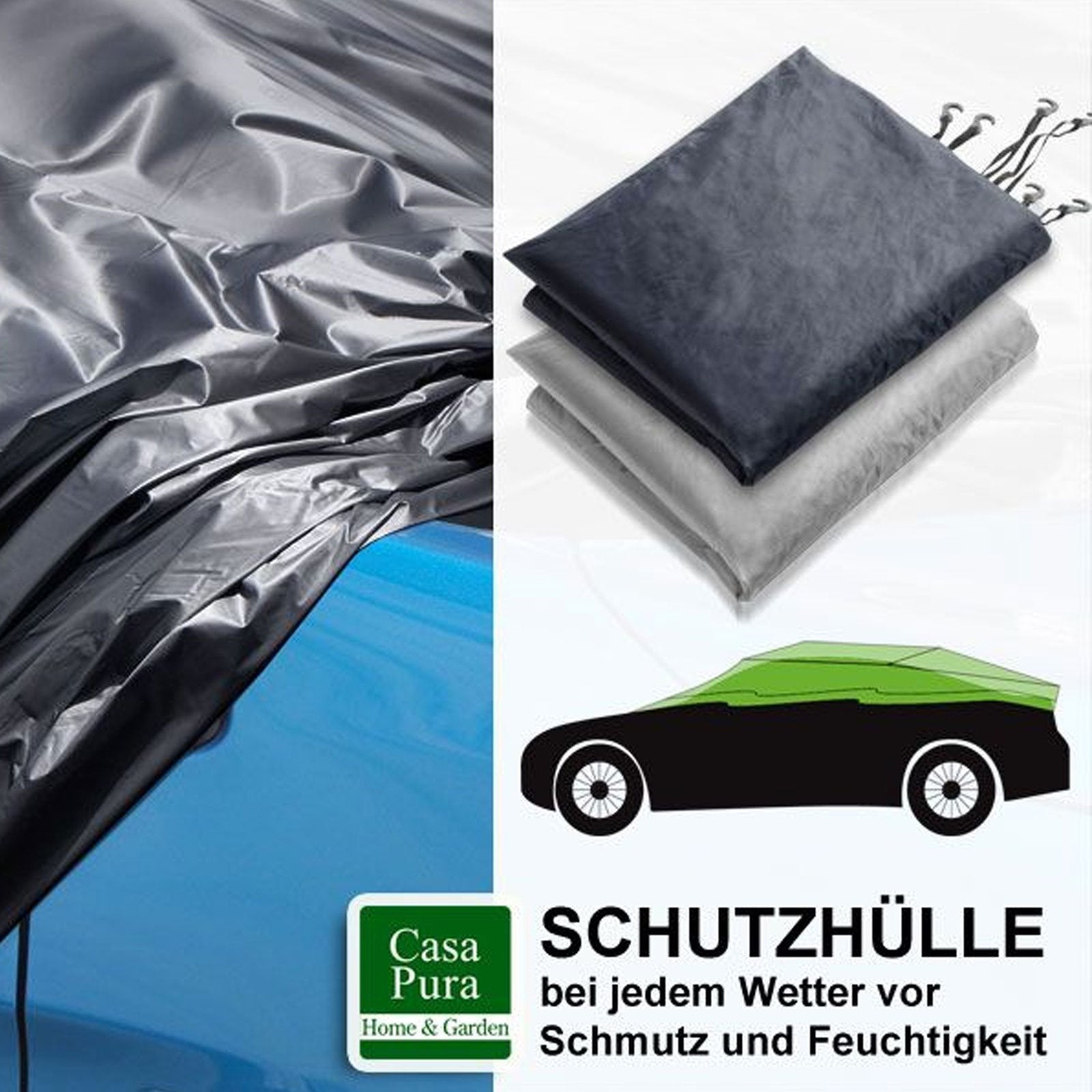 Elastyczne paski wszyte w krawędź pokrowca samochodowego zapewniają bezpieczne trzymanie podczas wiatru i pogody. Jest również bardzo łatwy do zamocowania, po prostu naciągając plandekę. Odporny na warunki atmosferyczne materiał plandeki zapewnia dodatkową ochronę Twojego samochodu. Dodatkowo, dzięki swojej długowieczności, może być również używany w dowolnym celu przez kilka sezonów. Dostępny w dwóch różnych kolorach, pokrowiec na samochód zapewnia również wizualną atrakcję.