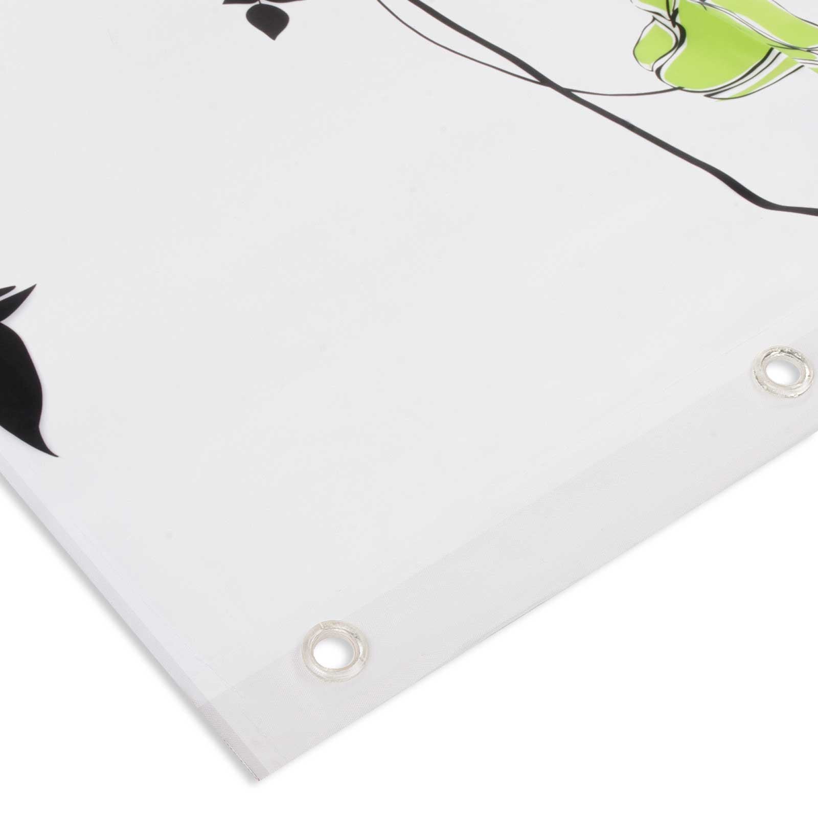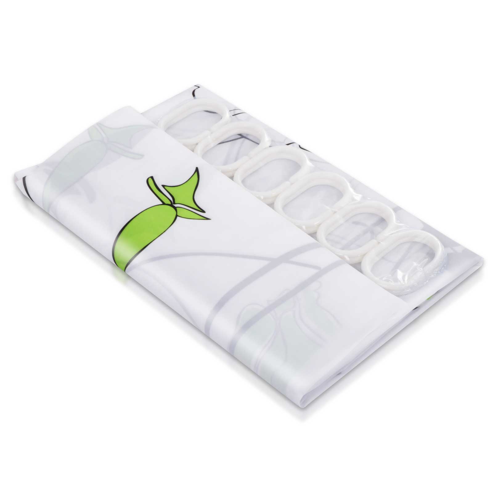 Zasłona prysznicowa i kąpielowa wyposażona jest we wszytą listwę obciążającą, dzięki której nie zawija się na brzegu wanny. Do mocowania użyj dołączonych pierścieni z tworzywa sztucznego, można je też zastąpić innymi klipsami mocującymi. W razie potrzeby zasłonę prysznicową można wyprać w pralce, a następnie wyprasować. Jest to możliwe dzięki zastosowaniu wysokiej jakości materiału poliestrowego.