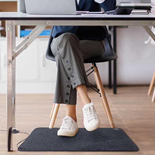 Wysokiej jakości dywan grzewczy zapewnia przyjemne ciepło dla Twoich stóp. Podgrzewana mata do stóp idealnie ogrzeje Twoje stopy w zimne dni czy to w pracy, czy w zaciszu domowego biura lub podczas odpoczynku w salonie. Umieść dywanik grzewczy pod biurkiem, postaw na nim stopy wygodnie siedząc i włącz funkcję ogrzewania za pomocą włącznika. Po aktywacji dywan automatycznie nagrzewa się do temperatury do 55°C. Dzięki niskiemu zużyciu energii i wbudowanej ochronie przed przegrzaniem nasz dywan grzewczy jest idealnym towarzyszem na mroźne zimowe dni.