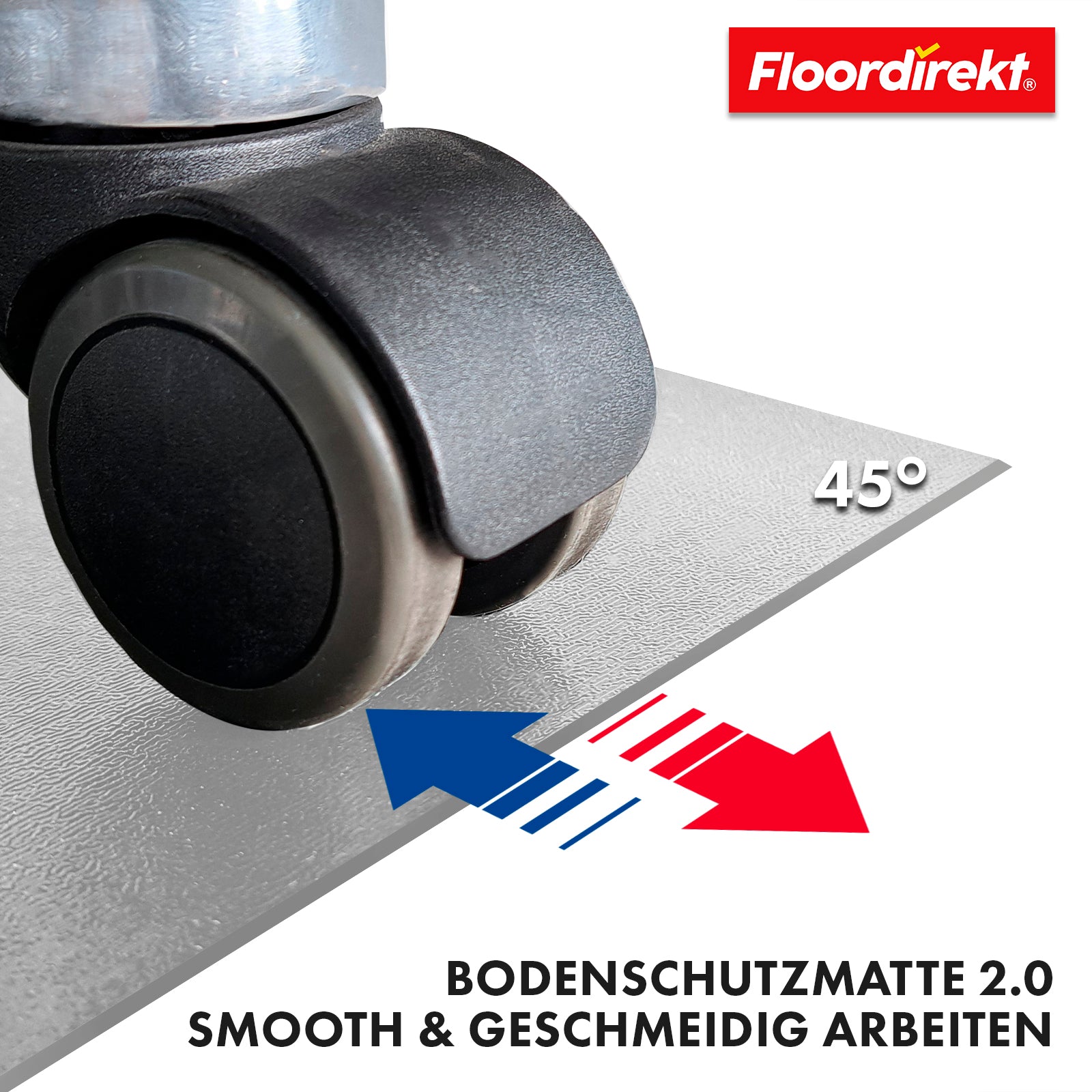 Mata ochronna "Kleopatra" o grubości 1,5 mm zapewnia optymalną ochronę podłóg przed zarysowaniami, zużyciem i uszkodzeniami. Wytrzymały materiał jest jednak lekki i waży zaledwie 1,92 kg/m², dzięki czemu mata jest niezwykle łatwa w obsłudze. Dzięki specjalnym krawędziom ściętym pod kątem 45 stopni, mata jest szczególnie łatwa do przewrócenia za pomocą krzeseł biurowych, nie tracąc przy tym nic ze swojej elegancji.