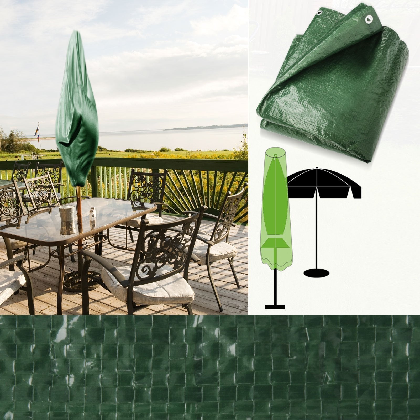 Pokrowiec ochronny na parasole wykonany jest z odpornej na warunki atmosferyczne, wodoodpornej tkaniny polietylenowej. Dzięki pokrowcowi odpornemu na warunki atmosferyczne parasol jest niezawodnie chroniony przed brudem, wilgocią i promieniami UV, dzięki czemu ma dłuższą żywotność. Pokrowiec ochronny posiada stabilne metalowe oczka, które służą do optymalnego mocowania. Do jej związania można użyć mocnego sznurka lub sznurka.
