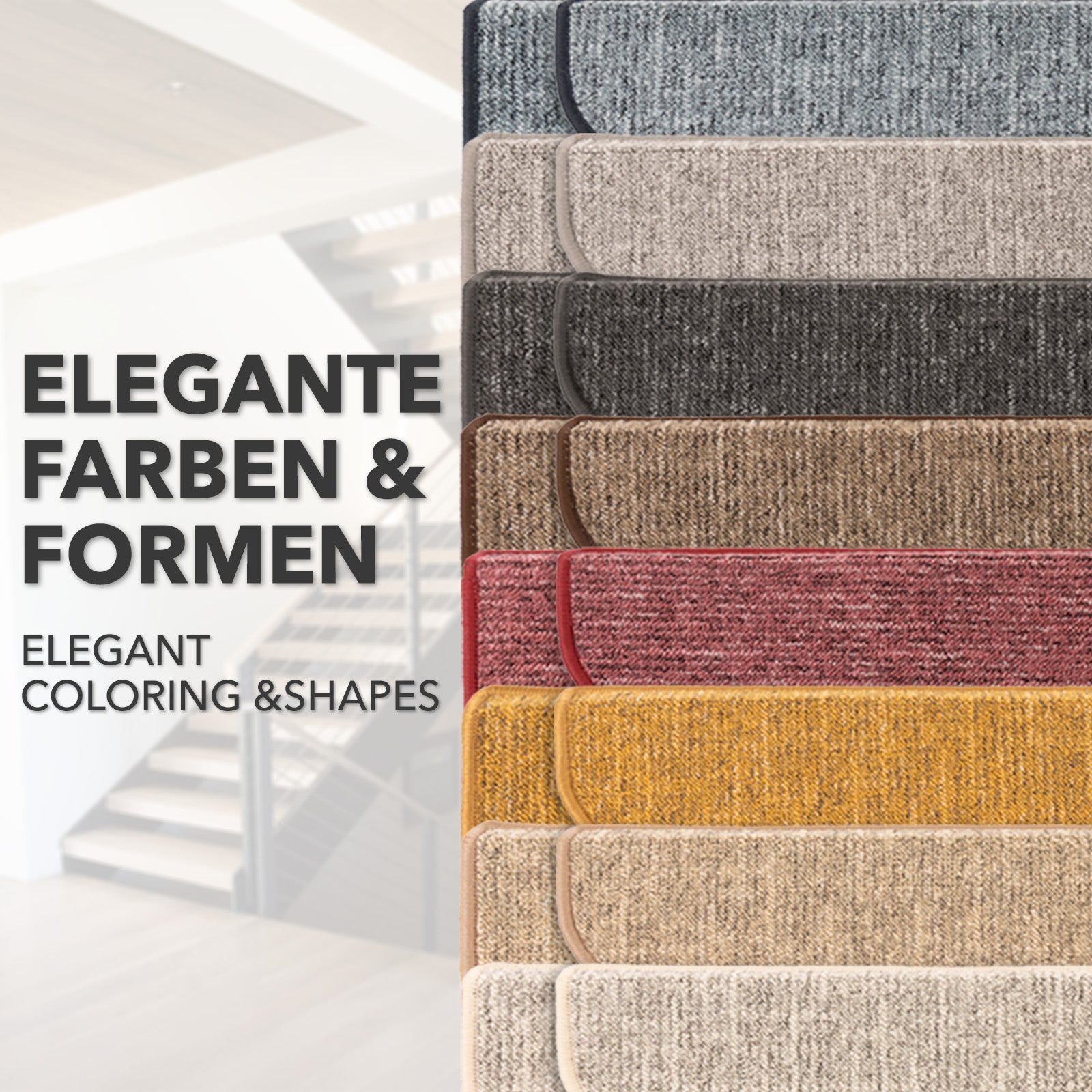 Wybierz pomiędzy jasnymi, bardziej subtelnymi odcieniami lub ciemniejszymi, charakterystycznymi kolorami mat na schody. Możesz mieć pewność, że maty na schody wkomponują się w klimat Twojego domu.