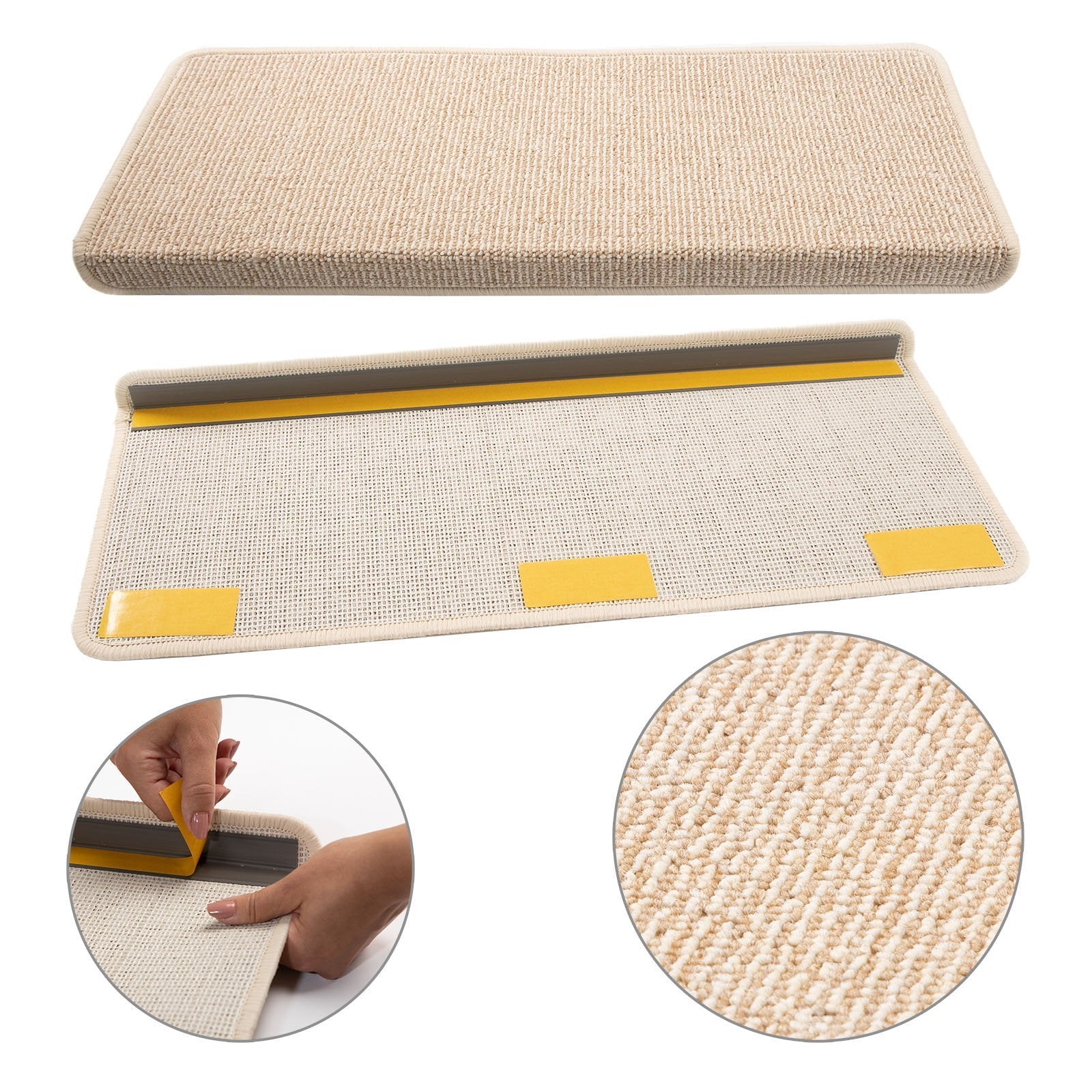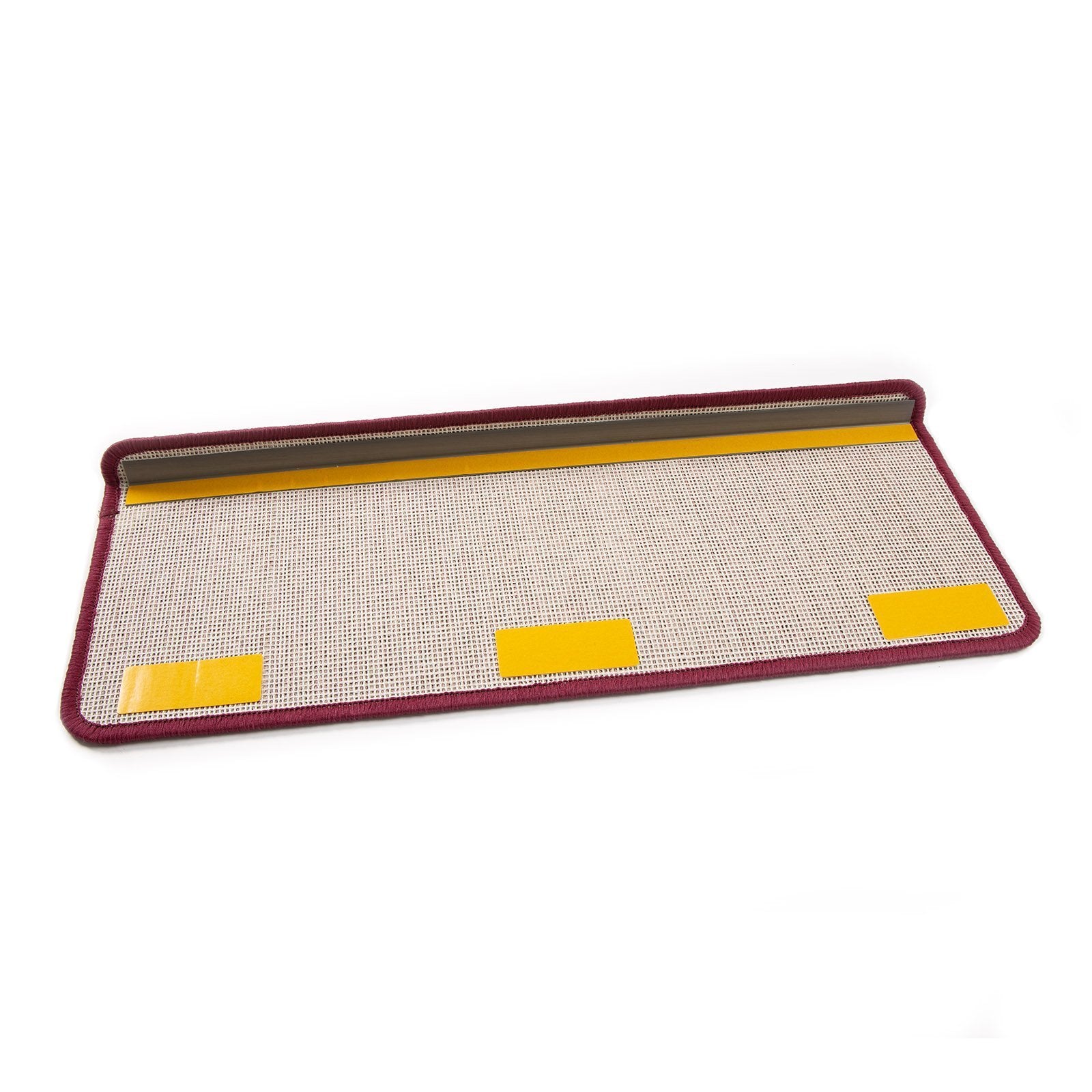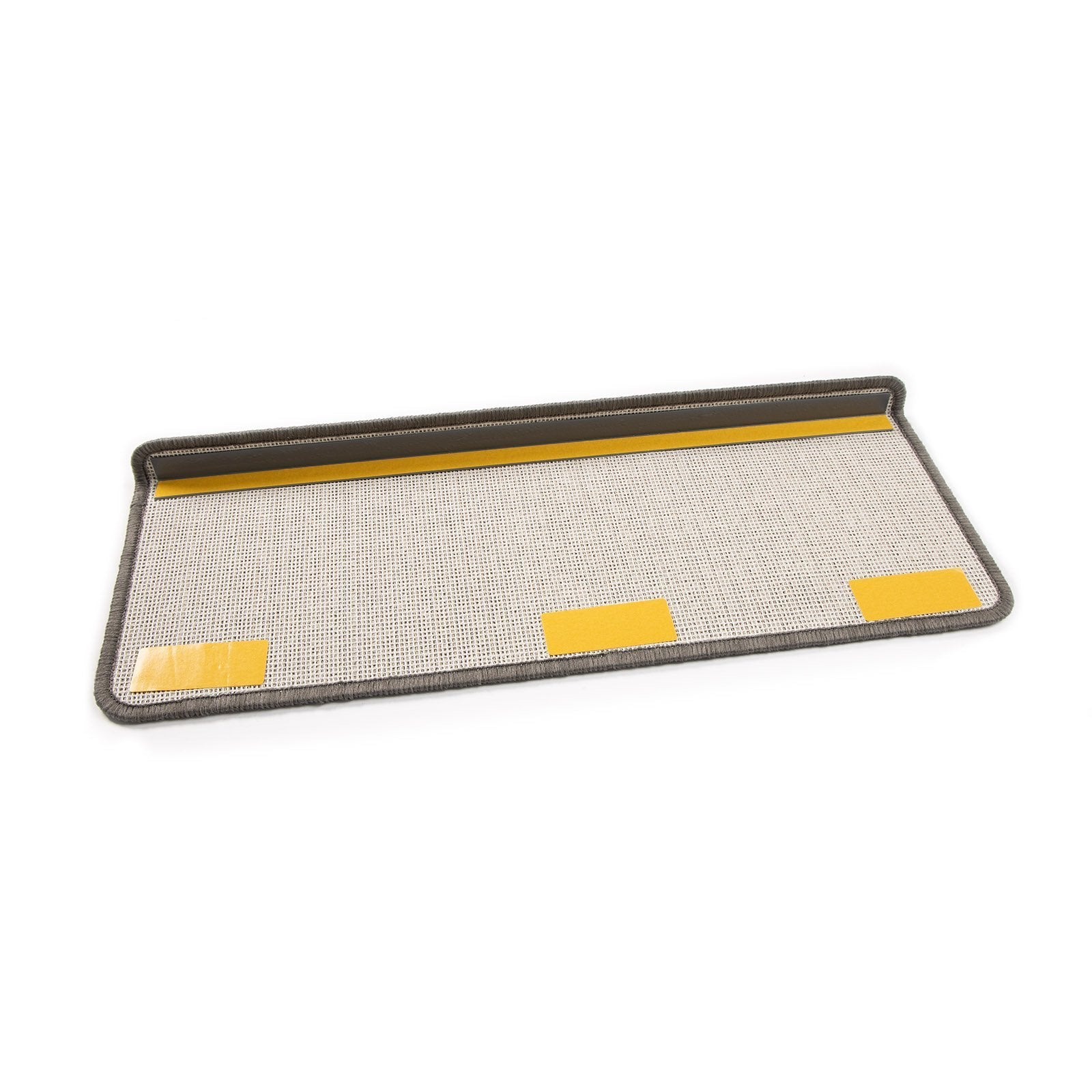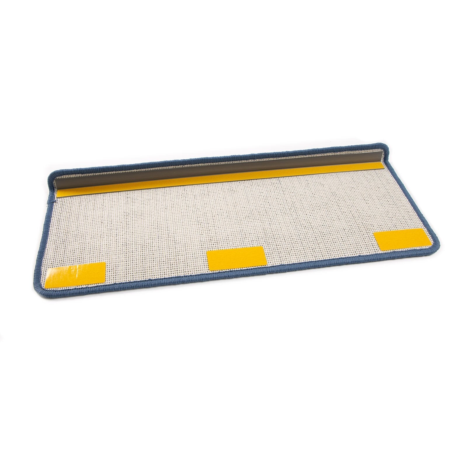 Maty schodowe można łatwo i szybko przymocować do stopni schodów za pomocą kątownika i dodatkowych pasków samoprzylepnych na spodzie maty. Należy zadbać o to, aby poszczególne stopnie były wolne od wody i tłuszczu. Dlatego zaleca się wcześniejsze dokładne wyczyszczenie stopni i usunięcie ewentualnych zabrudzeń. Następnie należy usunąć folię ochronną z pasków samoprzylepnych i docisnąć każdą matę do stopni. Upewnij się, że kąt prosty znajduje się dokładnie na krawędzi stopnia. Jeśli maty się zabrudzą, można je po prostu odkurzyć. Silniejsze zabrudzenia można usunąć wilgotną szmatką. W razie potrzeby zastosować również odpowiedni środek czyszczący do dywanów.