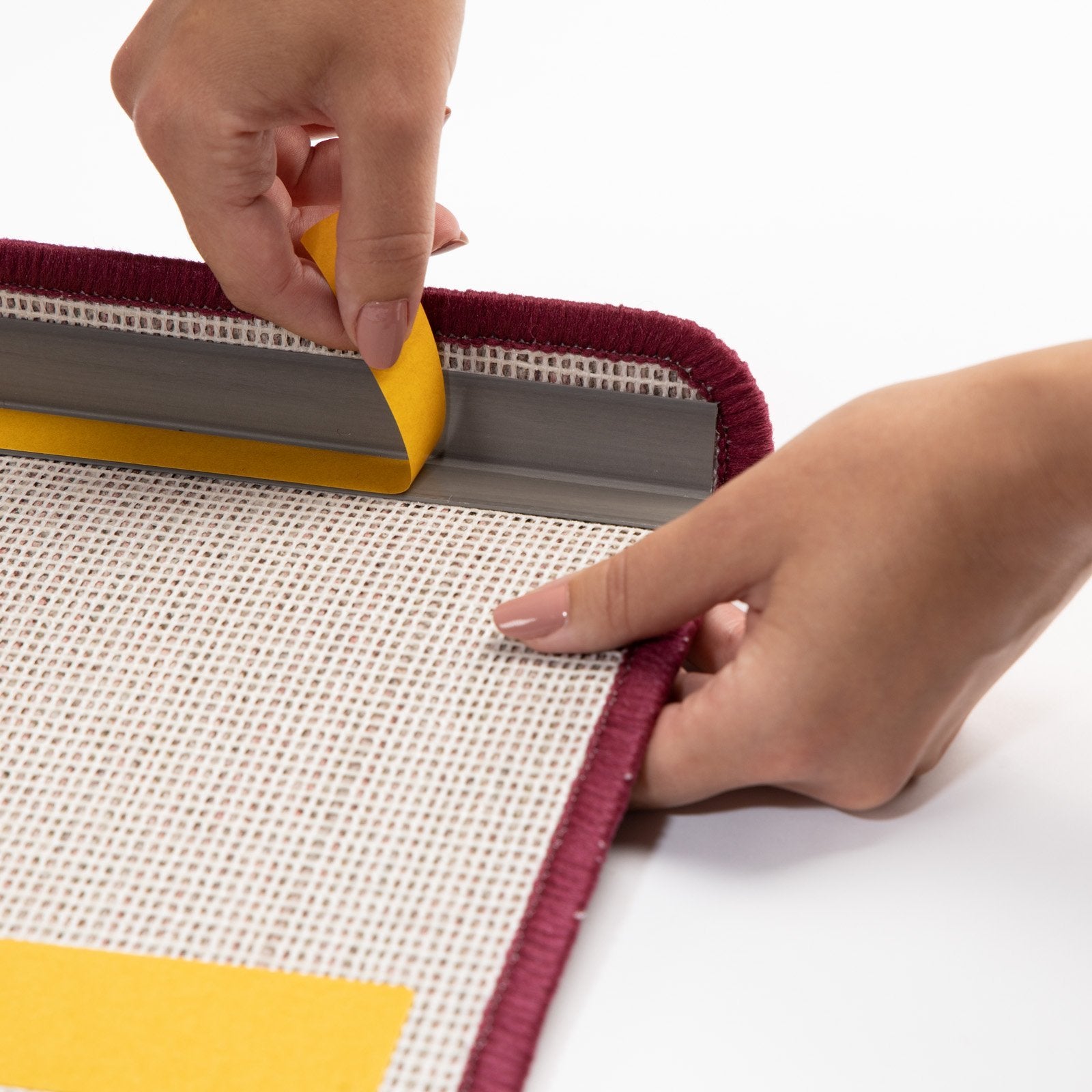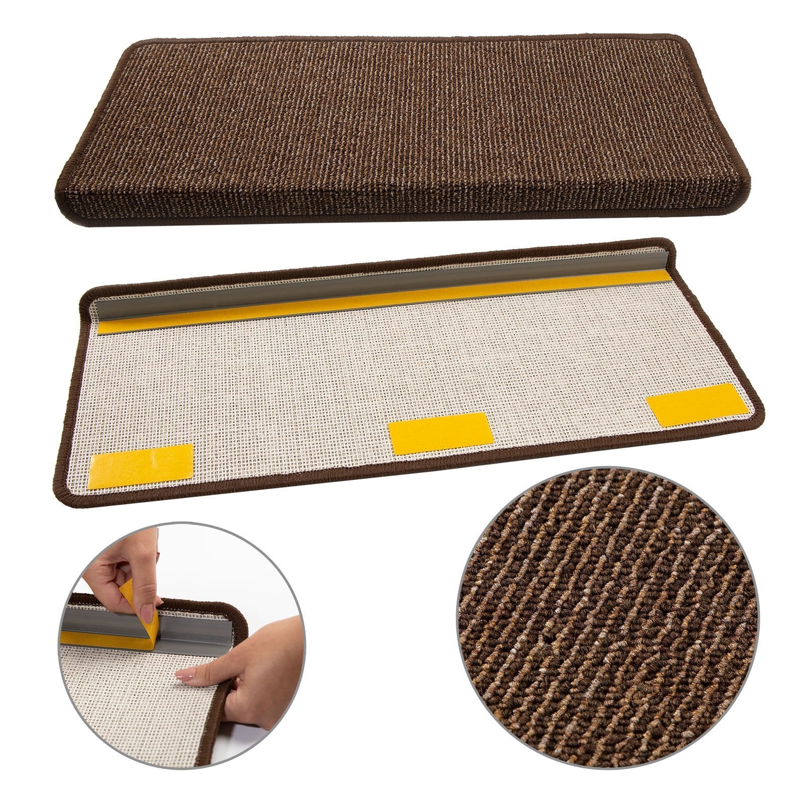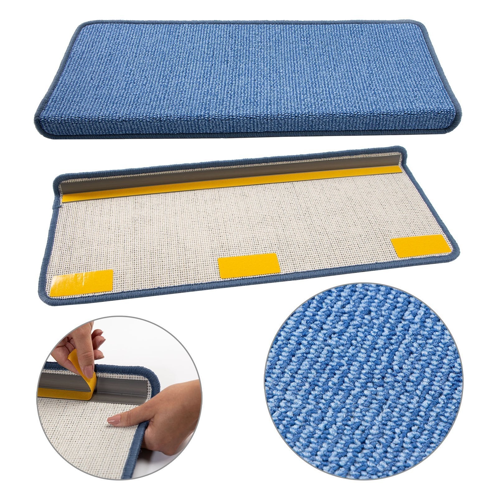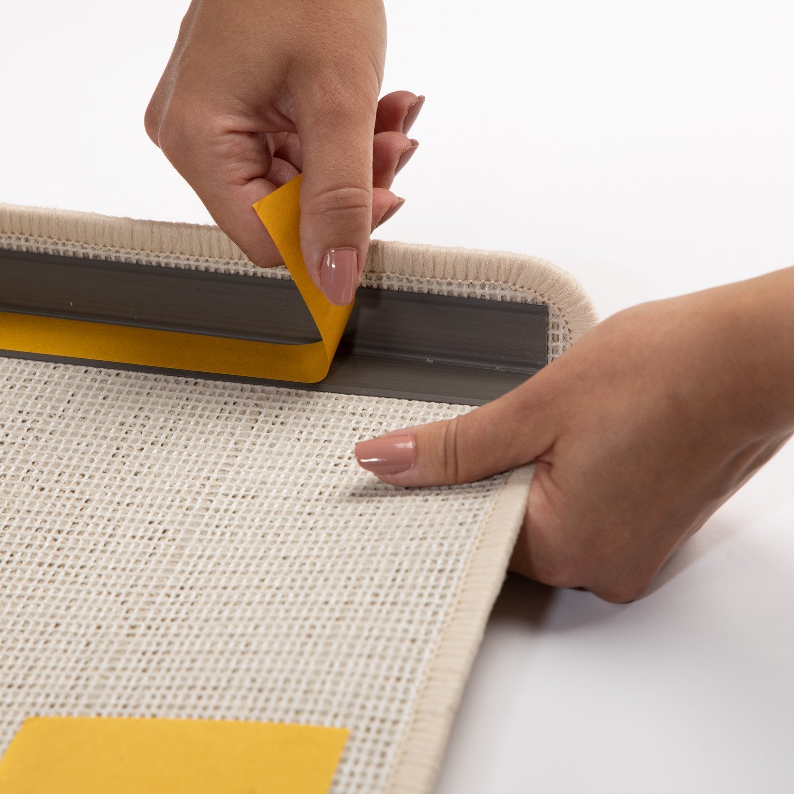 Maty schodowe można łatwo i szybko przymocować do stopni schodów za pomocą kątownika i dodatkowych pasków samoprzylepnych na spodzie maty. Należy zadbać o to, aby poszczególne stopnie były wolne od wody i tłuszczu. Dlatego zaleca się wcześniejsze dokładne wyczyszczenie stopni i usunięcie ewentualnych zabrudzeń. Następnie należy usunąć folię ochronną z pasków samoprzylepnych i docisnąć każdą matę do stopni. Upewnij się, że kąt prosty znajduje się dokładnie na krawędzi stopnia. Jeśli maty się zabrudzą, można je po prostu odkurzyć. Silniejsze zabrudzenia można usunąć wilgotną szmatką. W razie potrzeby zastosować również odpowiedni środek czyszczący do dywanów.