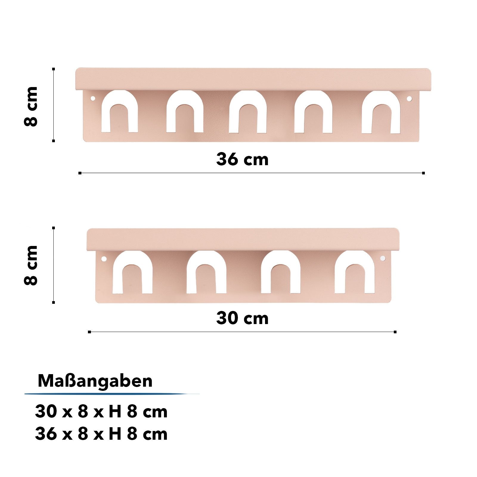 Niezwykła półka ścienna do Twojego wejścia nie tylko oferuje miejsce do przechowywania kluczy lub portfela, ale może być również wykorzystana jako praktyczny wieszak na kurtki i torby. Można je również zamocować jako półkę w salonie, na której można umieścić przedmioty dekoracyjne, takie jak rośliny czy obrazy. Dostarczane jako zestaw, dwie półki ścienne można łączyć na wiele sposobów, w zależności od potrzeb i upodobań. Wykonane z mocnego metalu, w dwóch atrakcyjnych kolorach