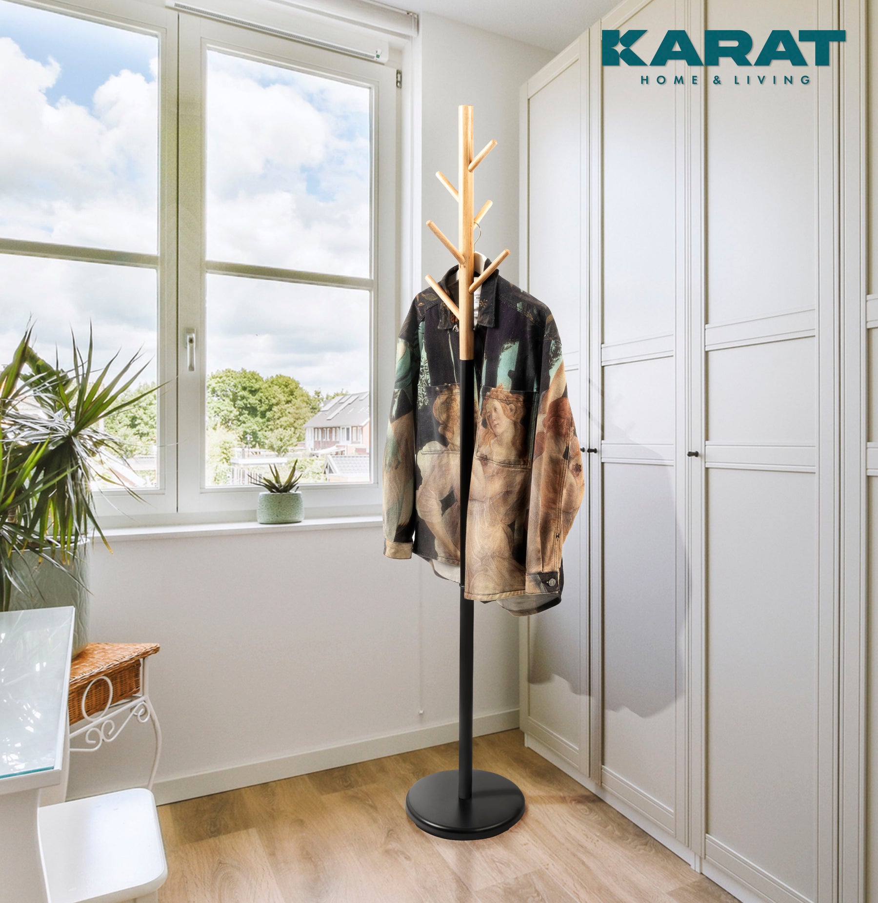 Ten wieszak na ubrania okaże się idealnym rozwiązaniem dla wprowadzenia optymalnej ilości porządku i stylu do Twojego domu. Dzięki połączeniu drewna i stali lakierowanej na czarno, jest nie tylko niezwykle funkcjonalny, ale także przyciąga wzrok i doskonale pasuje do każdego wnętrza.